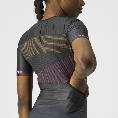 - L’ouverture avant Sanremo de Castelli s’adapte à la fois à la position repliée sur le vélo et à la position droite pendant la course à pied et la natation, tout en facilitant les pauses pipis ou l’ouverture quand vous commencez à avoir très chaud quand vous courrez